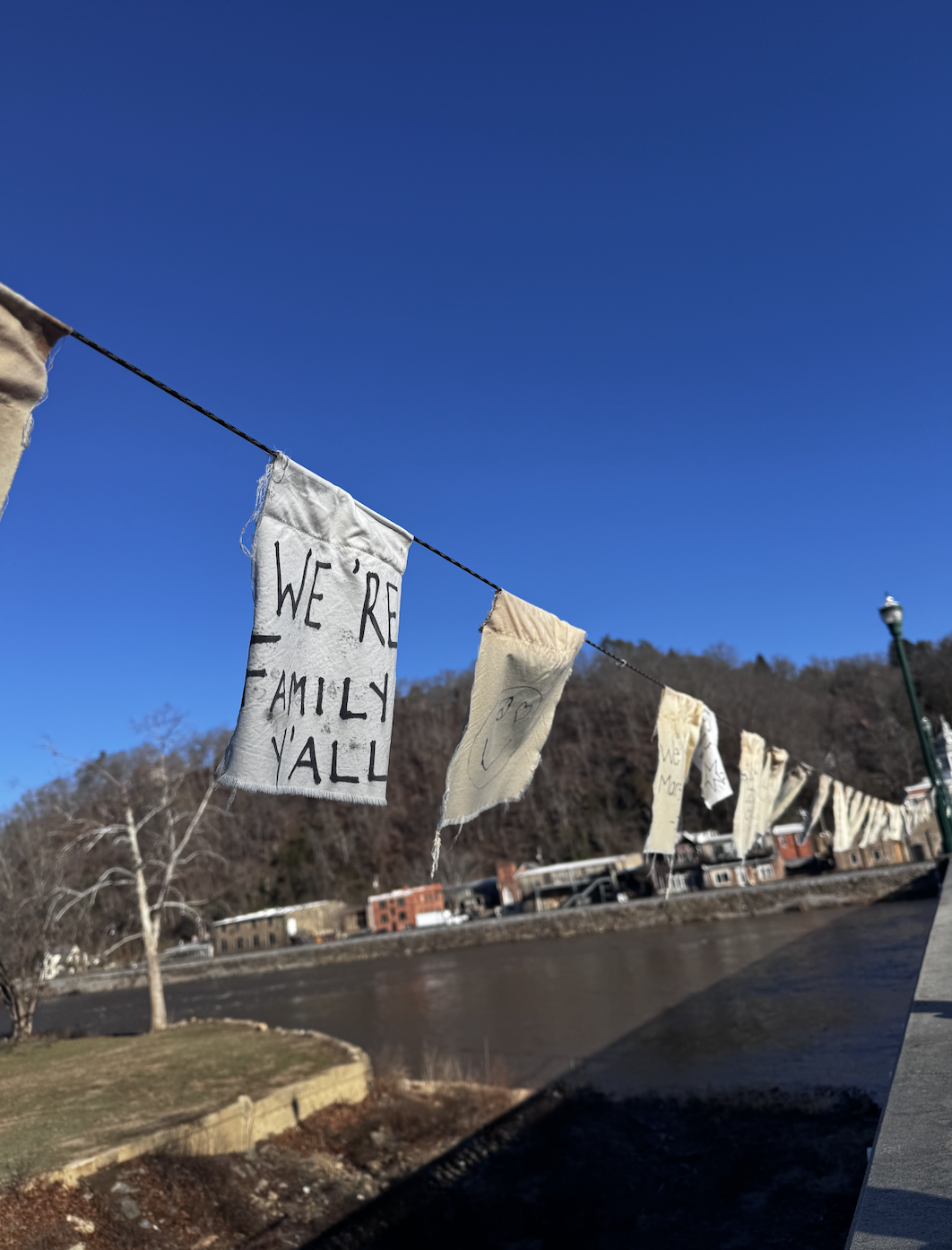 We were fortunate enough to be introduced to Rachel Bennett, Community Assistance Coordinator of the Marshall Relief Alliance. She gave us an introduction to Marshall High Studio and the town of Marshall, which Hurricane Helene severely impacted. There were foundations and debris along the banks of the French Broad River. We had a short history lesson, where, during the Civil War, there was a massacre of 13 soldiers considered one of the most tragic events in North Carolina.  When we toured the town, we were able to see the area in one view that gave us a sense of how severe the damage was. She explained that the river rose to 27 feet from the base, and its location downhill caused windows and doors to be submerged for 30 hours, along with parts of the building’s roofs.