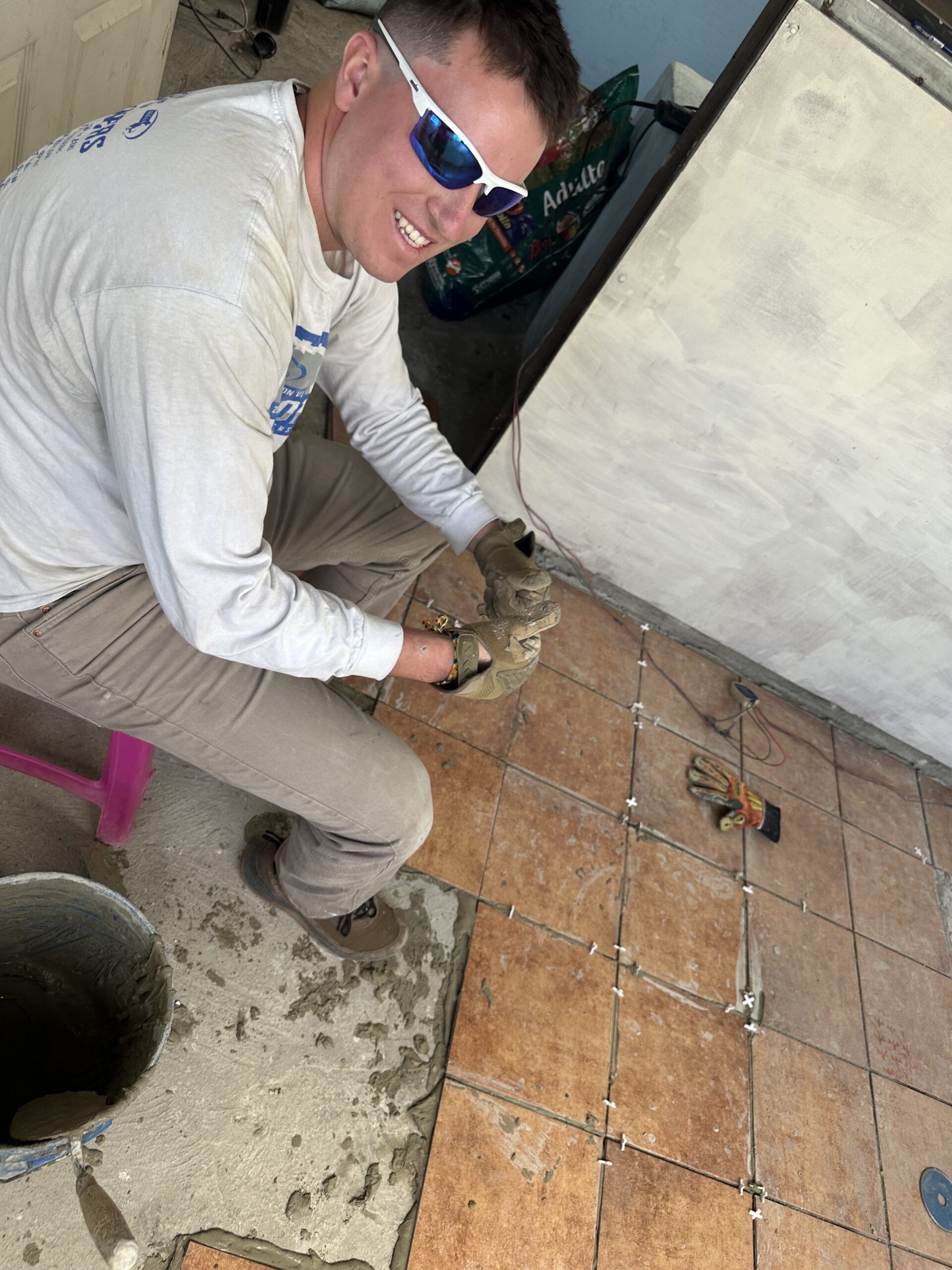 Mr. Madison laying tile.