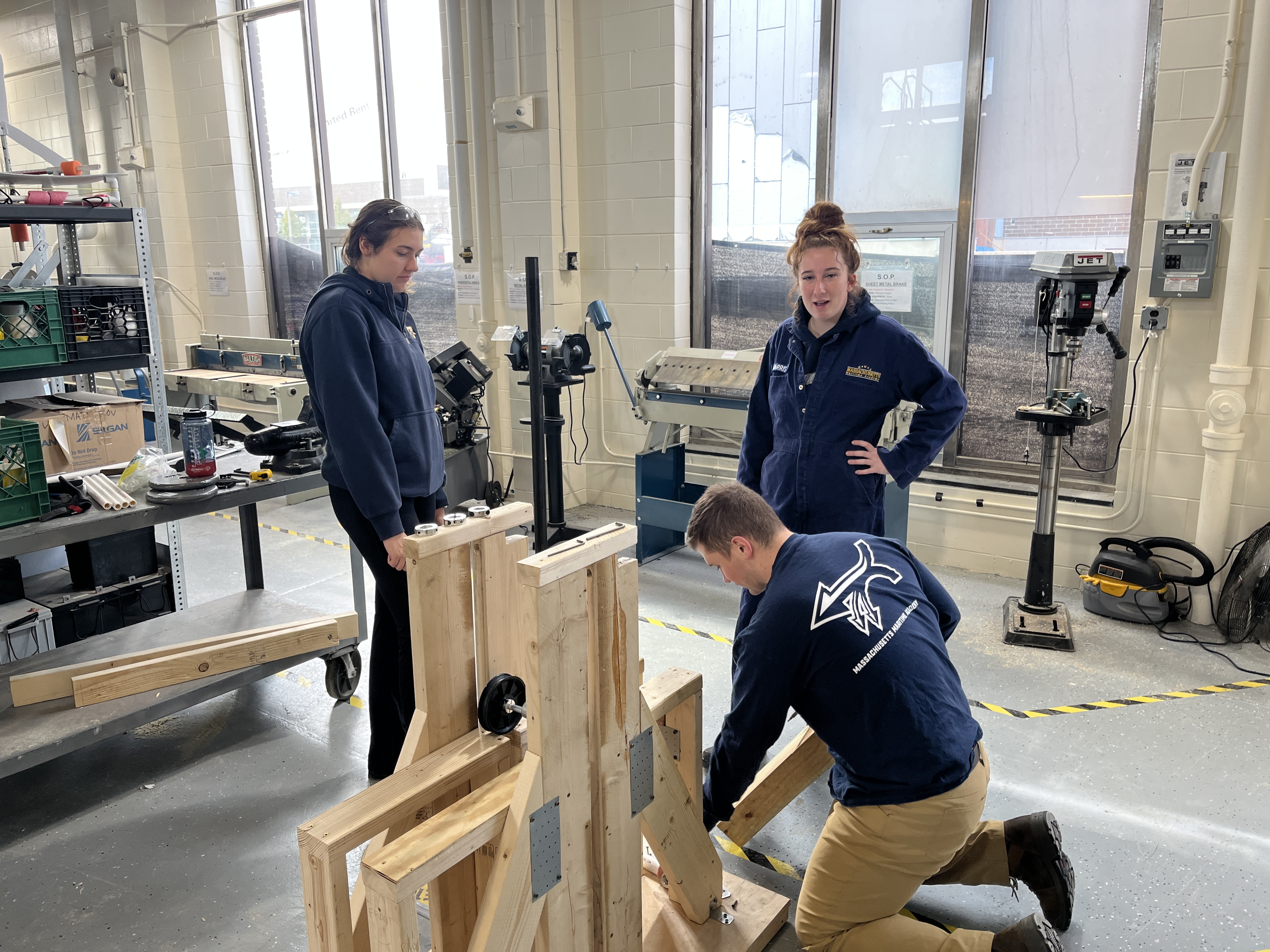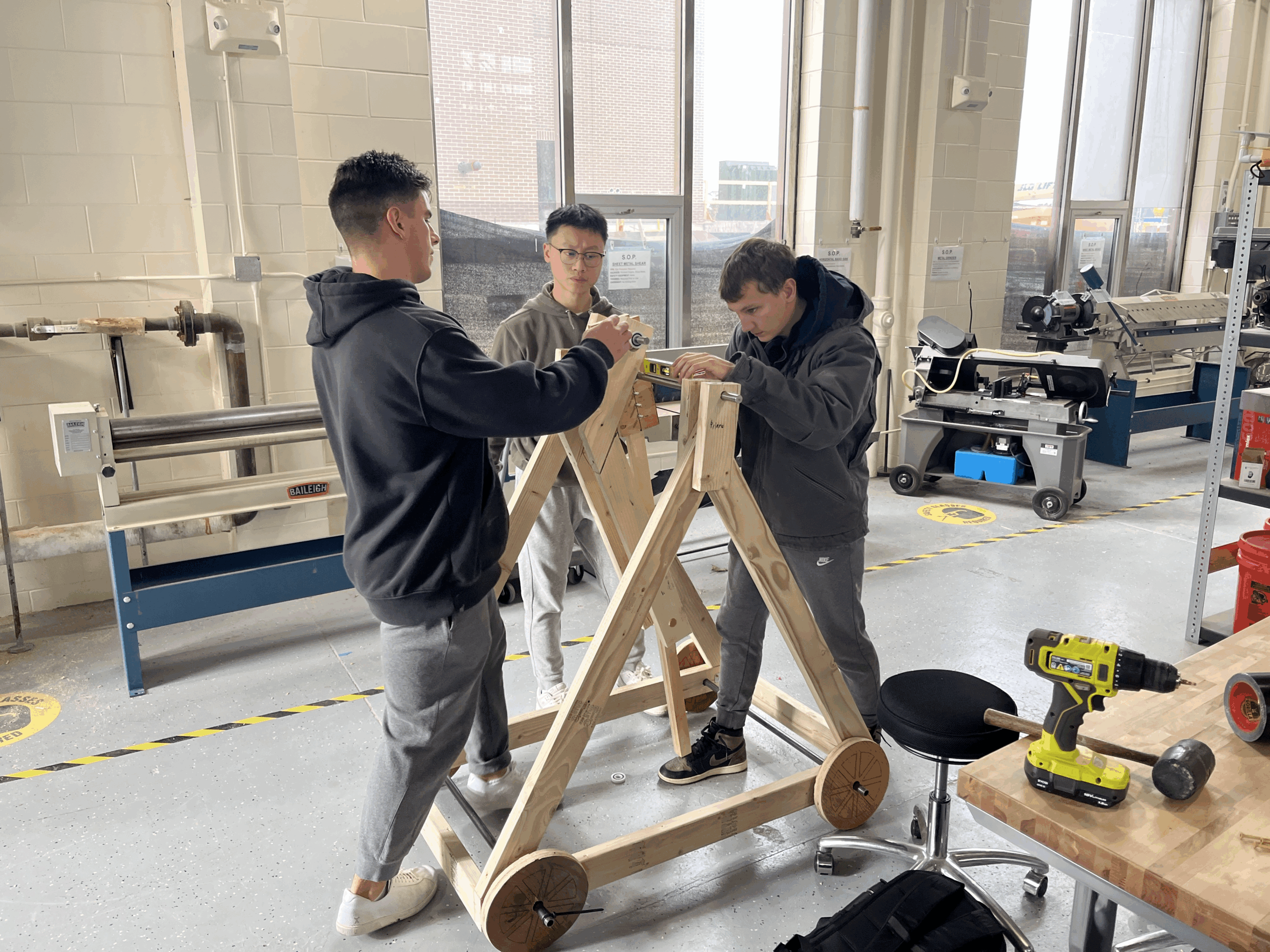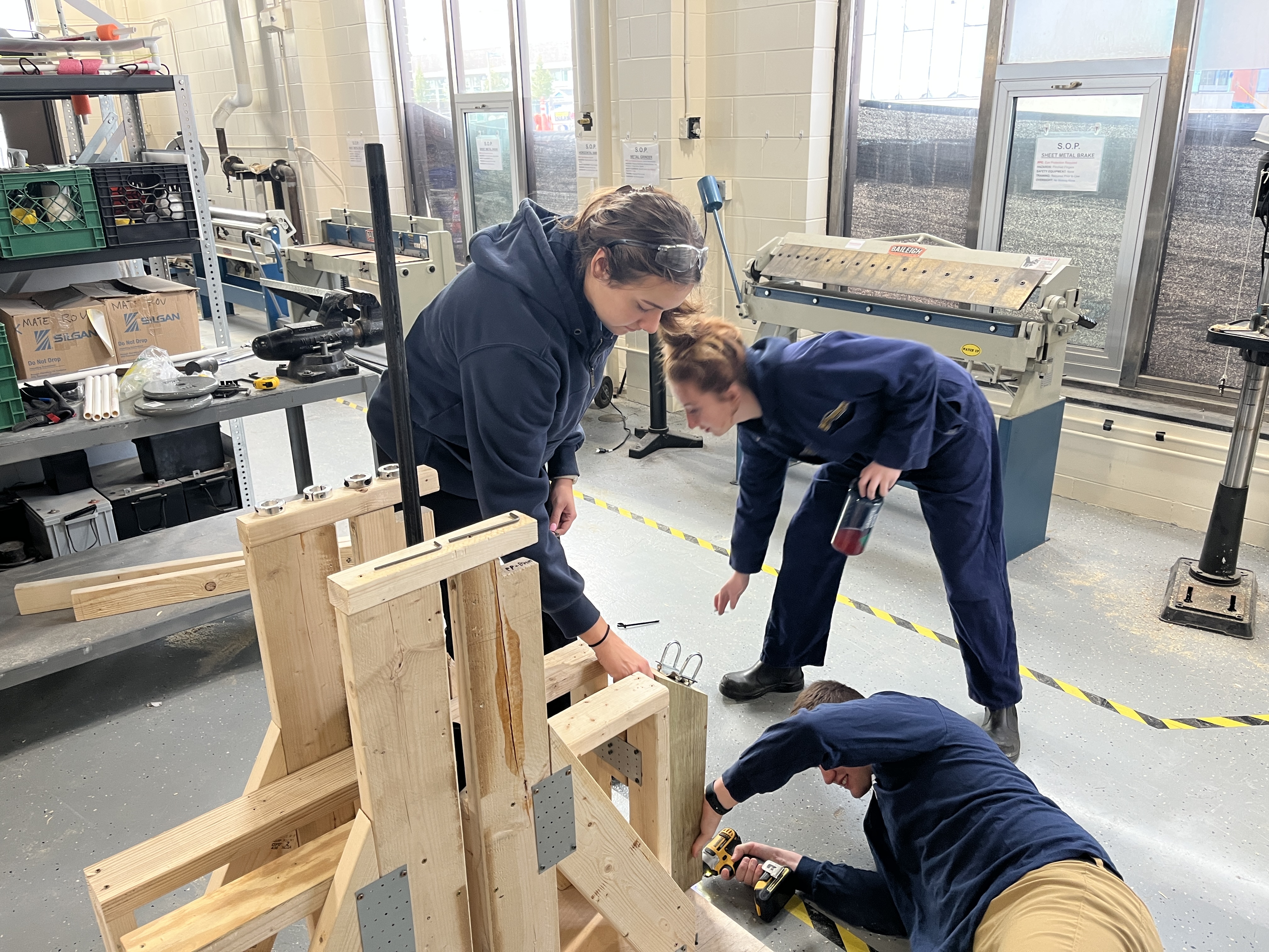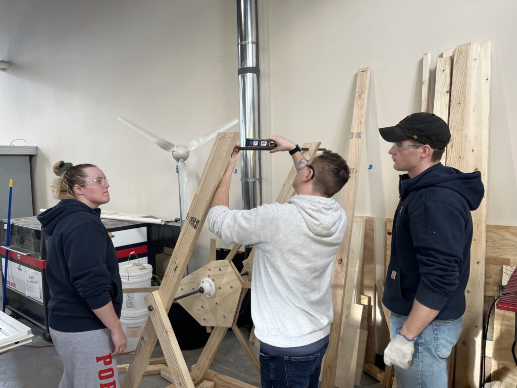 The ESE class of 2027 Introduction to Design cadets conducted a Trebuchet Competition event on December 11. Each of the six teams was provided 20 pounds of weight with a maximum drop height of 3 feet as a potential energy source to throw a tennis ball as far as possible down the field. The teams spent 8 weeks designing, building and testing their Trebuchet design concepts. The competition event had 3 design objectives; longest distance, most consistent distance and fastest firing rate of 5 tennis balls.