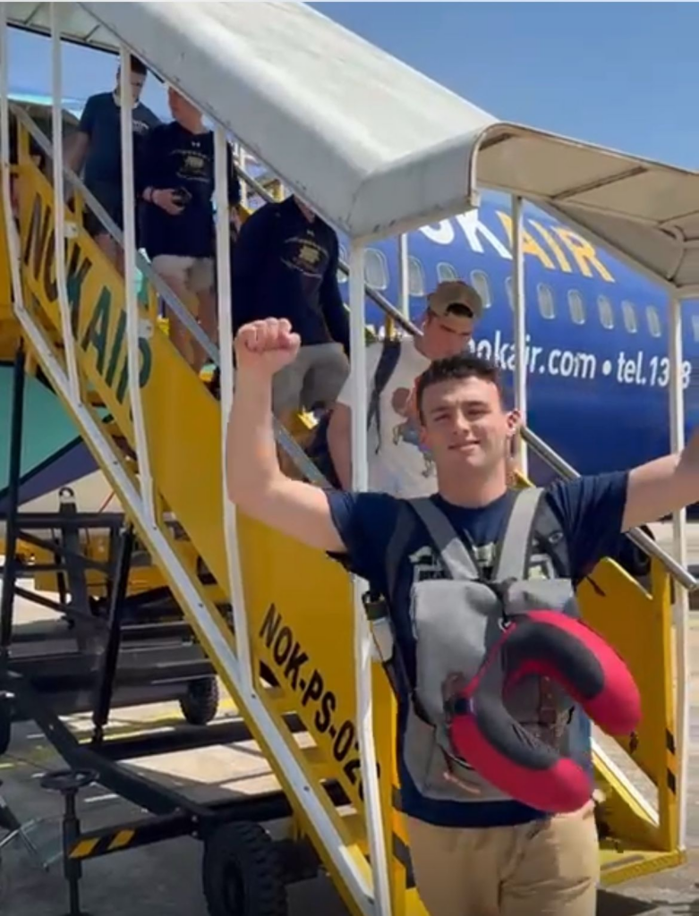 The group and I headed to the airport from AIT via bus. The ride only took about an hour and our plane departed at 11:50 giving everyone plenty of time to sit back and relax. I decided I would get a chicken wrap and a strawberry acai from Starbucks, which I thoroughly enjoyed. Today was Superbowl and we caught bits of it on our phone during the journey.