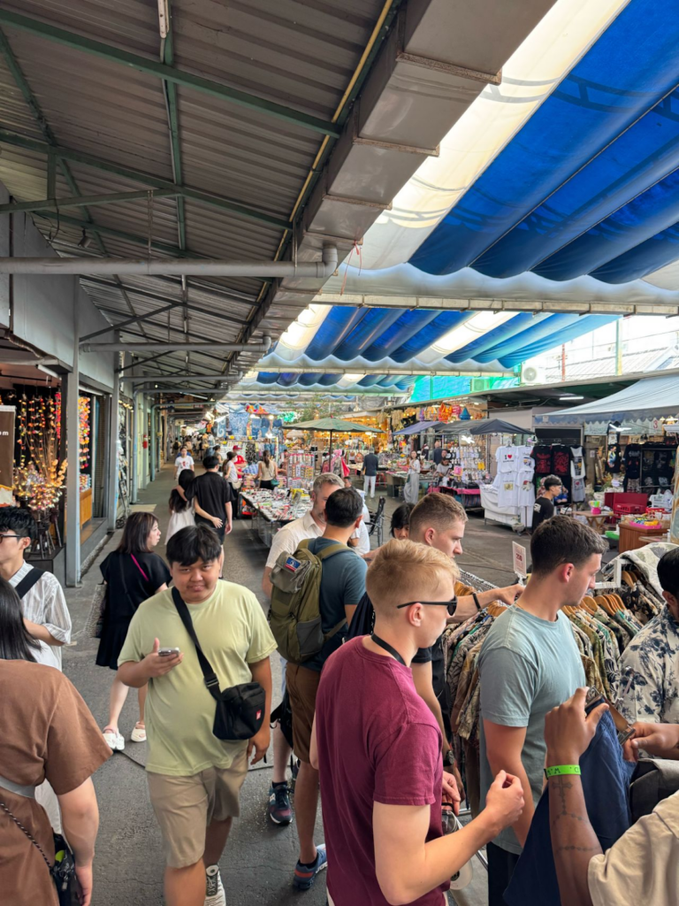 After exploring the mall we headed outside and got to explore on our own in the hundreds of street vendors. It was unlike anything I have ever seen, and you could get basically anything you could think of. It was divided into sections but instead of using the map, we all just randomly walked around. This was a perfect place for everyone to get souvenirs and gifts for their family and friends. These shops also felt endless and you could honestly spend multiple days here just looking around because there was so much. We even saw things that no one could imagine like a 10 foot tall wooden horse that cost 250,000 Baht! The outside was so full and packed with different vendors and it was honestly just surreal.